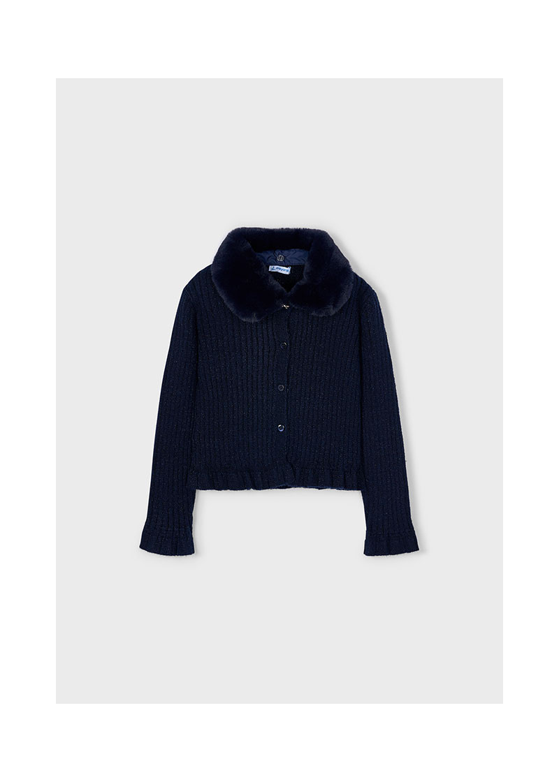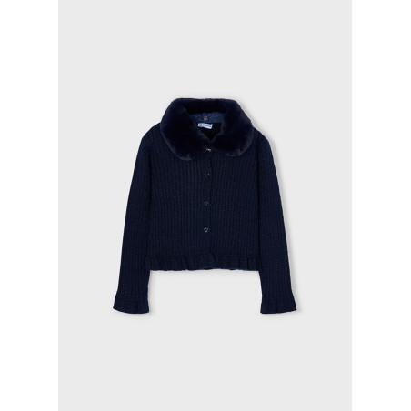 Cardigan tricot colletto pelli Marino 015