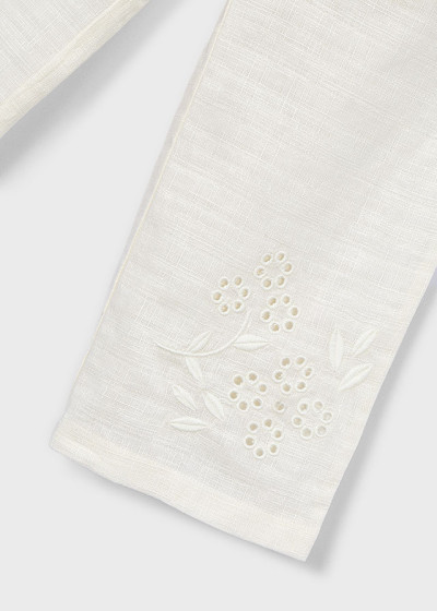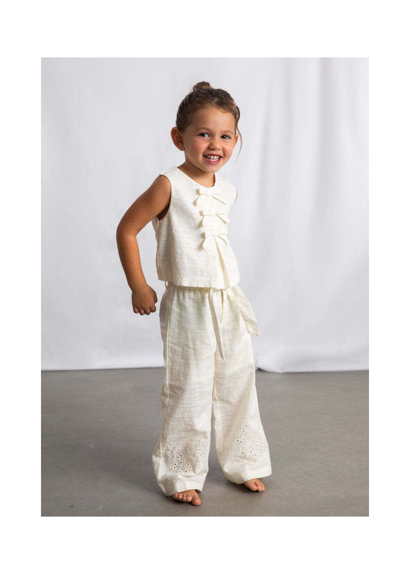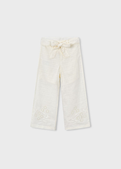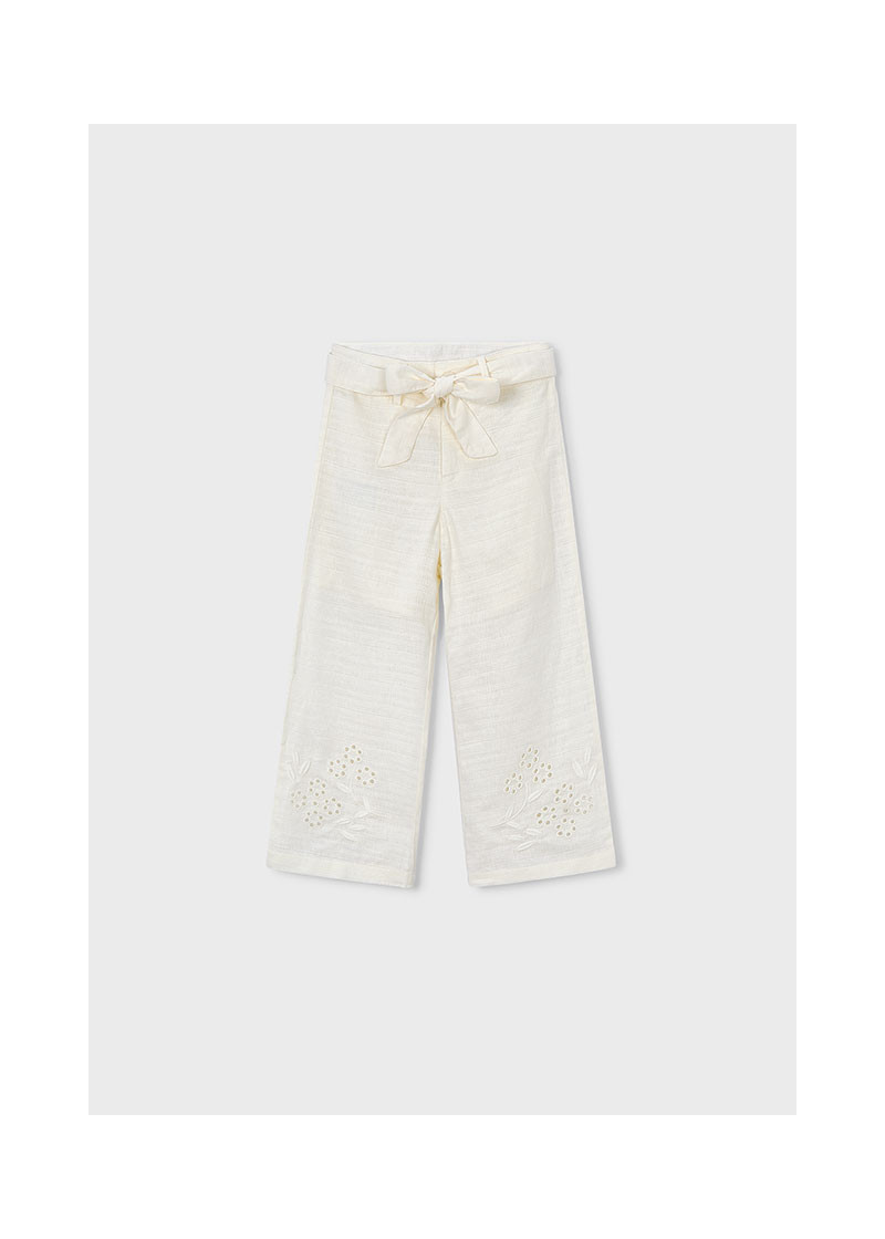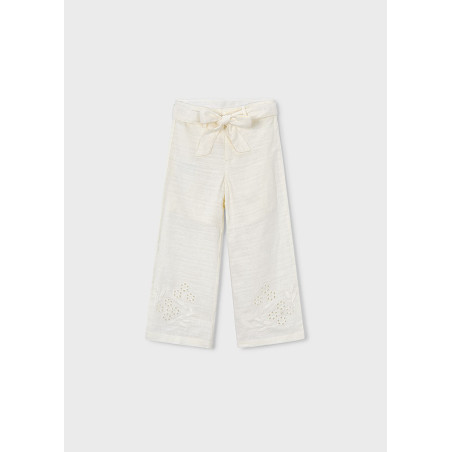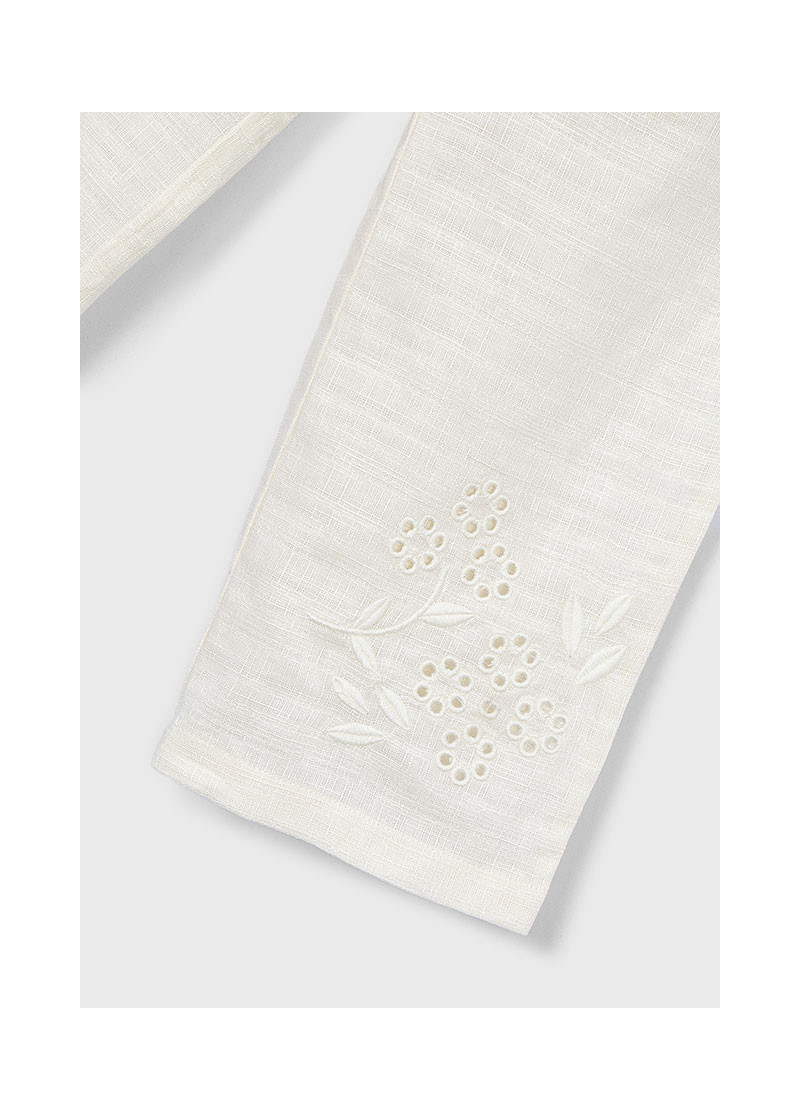 Pantalone lungo lino ricamo Bianc osso 015