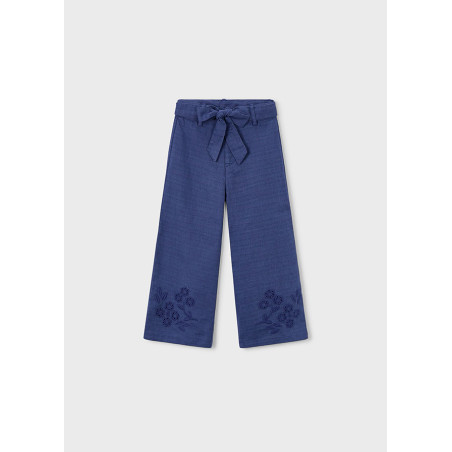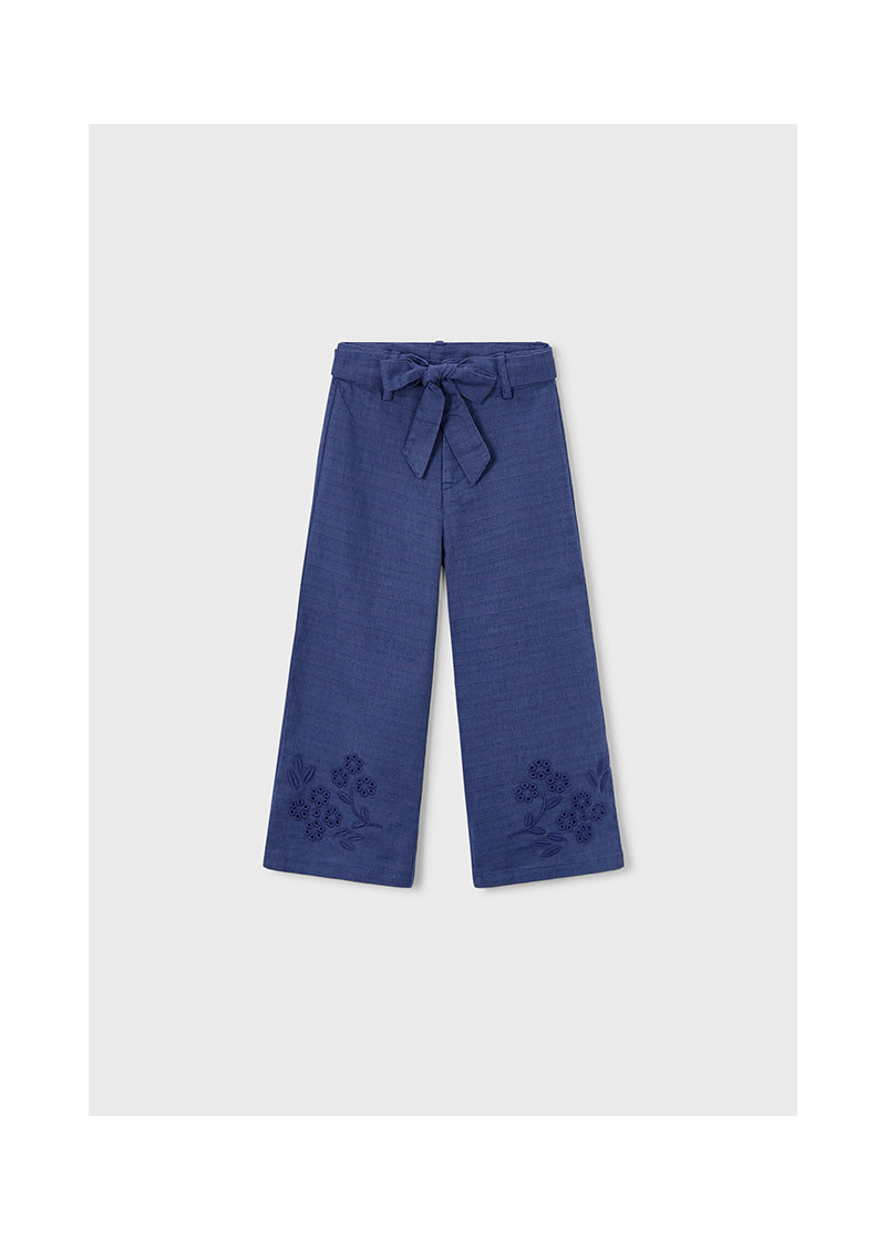 Pantalone lungo lino ricamo Porcellana 916