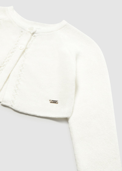 Cardigan tricot basico girocollo Ecru 076