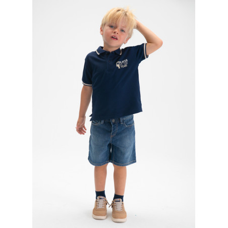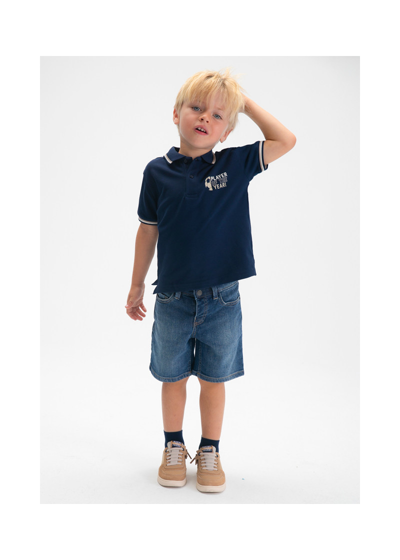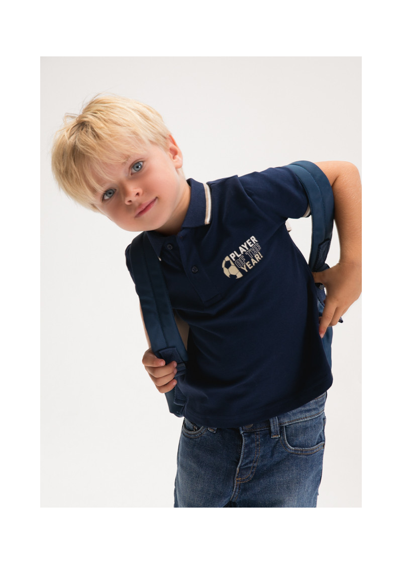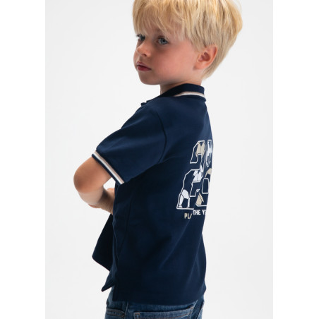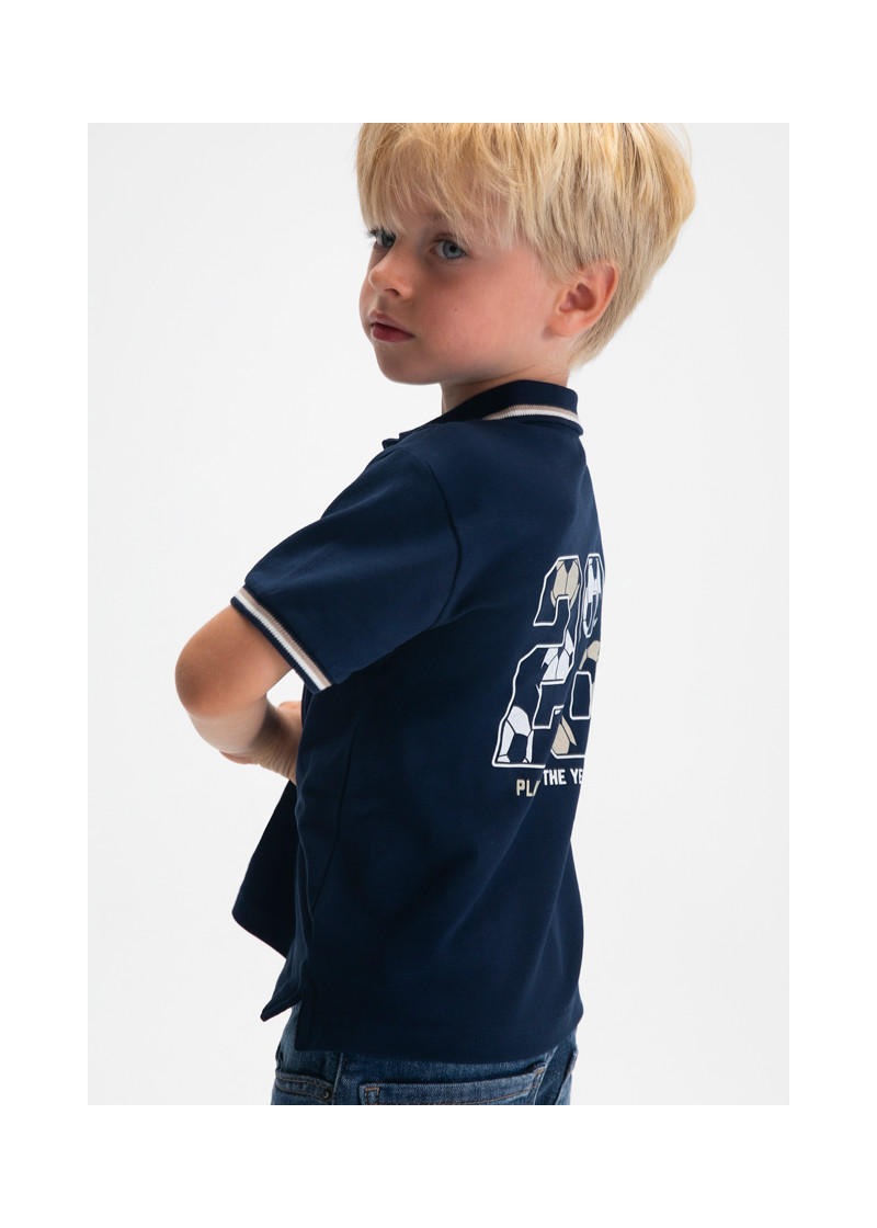 Polo m/c print schiena Marino 061